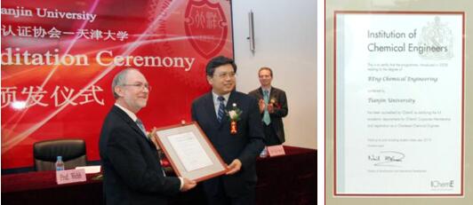 2007年3月,天津大學(xué)化學(xué)工程專(zhuān)業(yè)國(guó)際認(rèn)證領(lǐng)導(dǎo)小組和工作小組成立,通過(guò)系統(tǒng)學(xué)習(xí)認(rèn)證規(guī)則、收集和整理認(rèn)證資料、撰寫(xiě)認(rèn)證報(bào)告、培訓(xùn)教職員工等方式,著力推動(dòng)相關(guān)工作進(jìn)行。2008年7月,天津大學(xué)正式提交國(guó)際認(rèn)證報(bào)告和相關(guān)資料。2008年10月,IChemE專(zhuān)業(yè)認(rèn)證專(zhuān)家組到天津大學(xué)進(jìn)行考察。2009年4月,IChemE專(zhuān)業(yè)認(rèn)證委員會(huì)主席ColinWebb教授親自到天大,將化學(xué)工程專(zhuān)業(yè)認(rèn)證證書(shū)頒發(fā)給天津大學(xué)。
