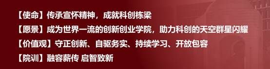 學(xué)院秉承“融容薪傳,啟智致新”的院訓(xùn),以“傳承宣懷精神,成就科創(chuàng)棟梁”為使命,培養(yǎng)兼具卓越創(chuàng)新精神和實踐能力的未來創(chuàng)業(yè)家。堅守“守正創(chuàng)新、自驅(qū)務(wù)實、持續(xù)學(xué)習(xí)、開放包容”的核心價值觀,致力于教育卓越與創(chuàng)新引領(lǐng),矢志成為世界一流的創(chuàng)新創(chuàng)業(yè)學(xué)院,助力科創(chuàng)的天空群星閃耀。