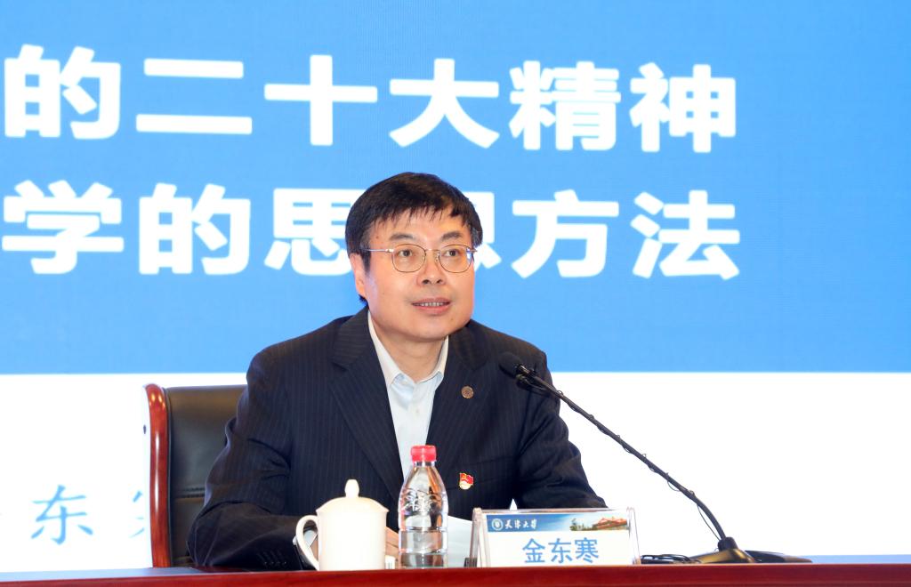 金東寒強調,深入學習貫徹黨的二十大精神,要提升戰略思維能力,把握好新時代中國特色社會主義思想的世界觀和方法論,堅持好、運用好貫穿其中的立場觀點方法,準確把握事物發展總體趨勢,加強前瞻性思考、全局性謀劃、戰略性布局、整體性推進;要提升歷史思維能力,善于從黨的百年奮斗史中汲取智慧、經驗、意志和力量,弘揚偉大建黨精神,堅定歷史自信,增強歷史主動,提升工作本領,奮力推進各項事業高質量發展;要提升系統思維能力,善于把改革、發展、穩定等工作當作系統工程,找出所有相關影響因素,既要抓中心抓重點,又要統籌兼顧,加強各方協調,凝聚起推動事業發展的強大合力,實現整體推進和重點突破相統一,更好地推動黨和國家各項事業的發展;要提升底線思維能力,要強化風險意識,掌握科學方法,提高防控能力,確保黨和國家各項工作順利推進。