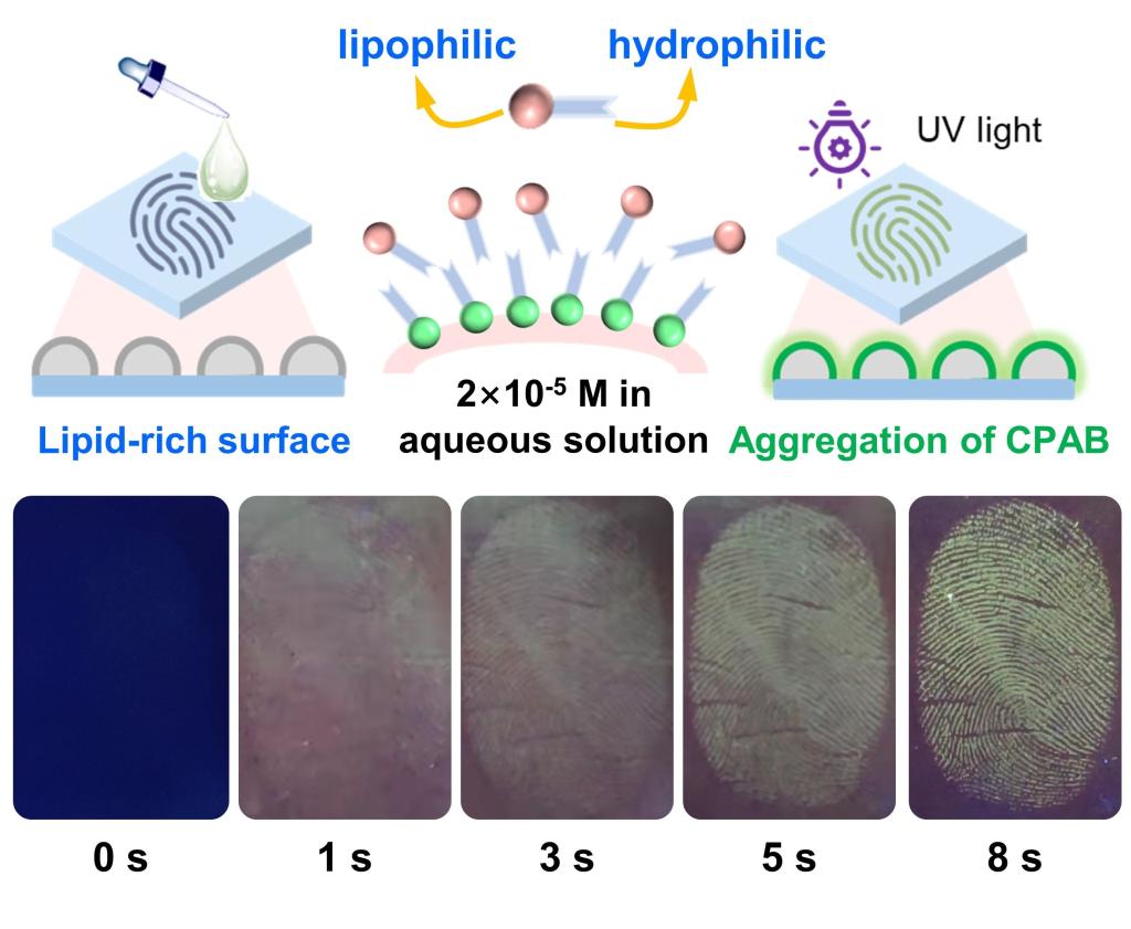 天津大學李振、謝育俊團隊研發了一種新型兩親性指紋顯影劑。這種顯影劑在空氣中研磨可使其發光顏色產生變化,還可以自行恢復;該顯影劑以水作為溶劑,不僅避免了對指紋精細結構的破壞,而且在各種基質均有良好的顯影效果。特別值得一提的是,該顯影劑不僅工作濃度低、顯影時間短,而且其獲得指紋顯影圖像的分辨率極高,對三級指紋細節尤其具有非常清晰的可視化效果。
