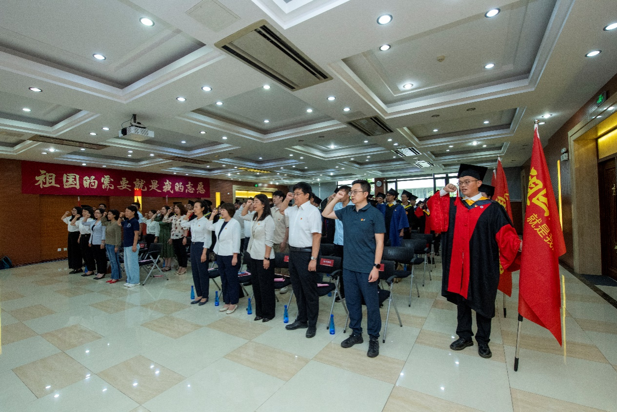 畢業(yè)生黨員中,有人即將扎根基層崗位服務(wù)人民,有人即將奔赴祖國西部教書育人,有人即將入職重點(diǎn)單位科研報(bào)國。會(huì)上,來自12個(gè)學(xué)院的畢業(yè)生黨員代表們從所在學(xué)院的院級(jí)黨組織書記手中接過書寫著“祖國的需要就是我的志愿”的紅色旗幟。他們將始終秉承“興學(xué)強(qiáng)國”的使命、“實(shí)事求是”的校訓(xùn)、“嚴(yán)謹(jǐn)治學(xué)”的校風(fēng)、“愛國奉獻(xiàn)”的傳統(tǒng)、“矢志創(chuàng)新”的追求,到基層和人民中去建功立業(yè),讓青春之花綻放在祖國最需要的地方。理學(xué)院畢業(yè)生黨員李淵表示,“作為青年黨員,我將在未來的人生道路上,始終踐行“天大品格”,聽黨話、跟黨走,同心向黨,奔赴遠(yuǎn)方,奮力書寫為中國式現(xiàn)代化挺膺擔(dān)當(dāng)?shù)那啻浩拢 ?/p>