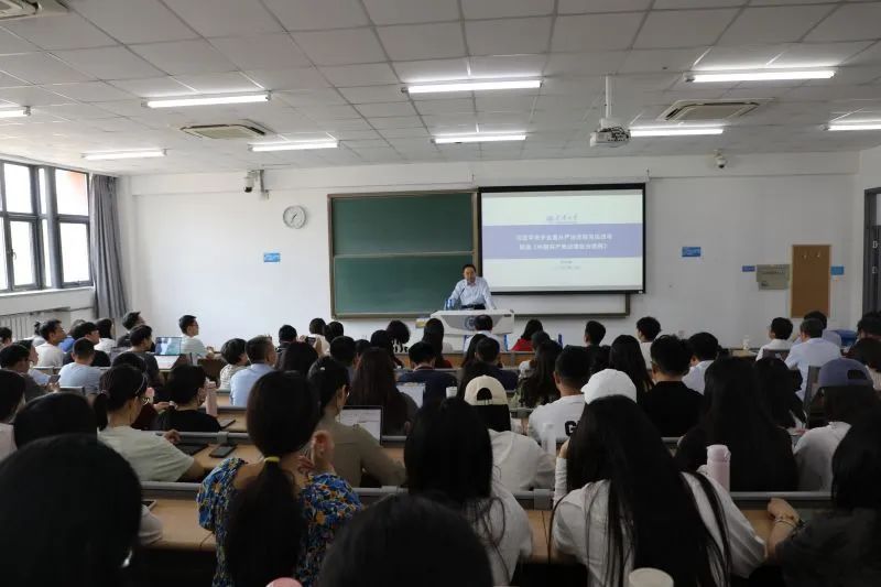 6月19日,法學院院長孫佑海教授為法學院全體師生黨員、在校畢業生作黨紀學習教育專題黨課暨畢業前最后一節大課